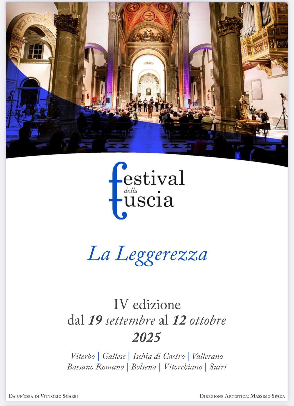 Un messaggio ripreso e ampliato da Alfonso Antoniozzi, assessore alla Cultura: “Il Festival della Tuscia 2025 è partitura che si apre nei teatri, nei palazzi, nelle basiliche, con i luoghi che diventano strumenti e la musica che li attraversa come memoria viva. La leggerezza che propone come tema non è certo fuga, ma precisione di un gesto che sa librarsi senza peso superfluo, lasciando nell’aria una traccia che unisce chi suona e chi ascolta. Come ogni spazio porta il proprio timbro e si intreccia con la voce degli interpreti, così ogni ascolto diventa esperienza che non appartiene solo al pubblico ma al territorio stesso. Da musicista sento in questo programma la possibilità rara di far coincidere tecnica e paesaggio, rigore ed emozione, senza mediazioni: non una vetrina ma un intreccio di presenze che restituisce comunità sonora, che rende visibile e udibile l’identità della Tuscia. In questo dialogo la candidatura della nostra città a Capitale Europea della Cultura è ancora una volta evidenza di ciò che già si compie”.