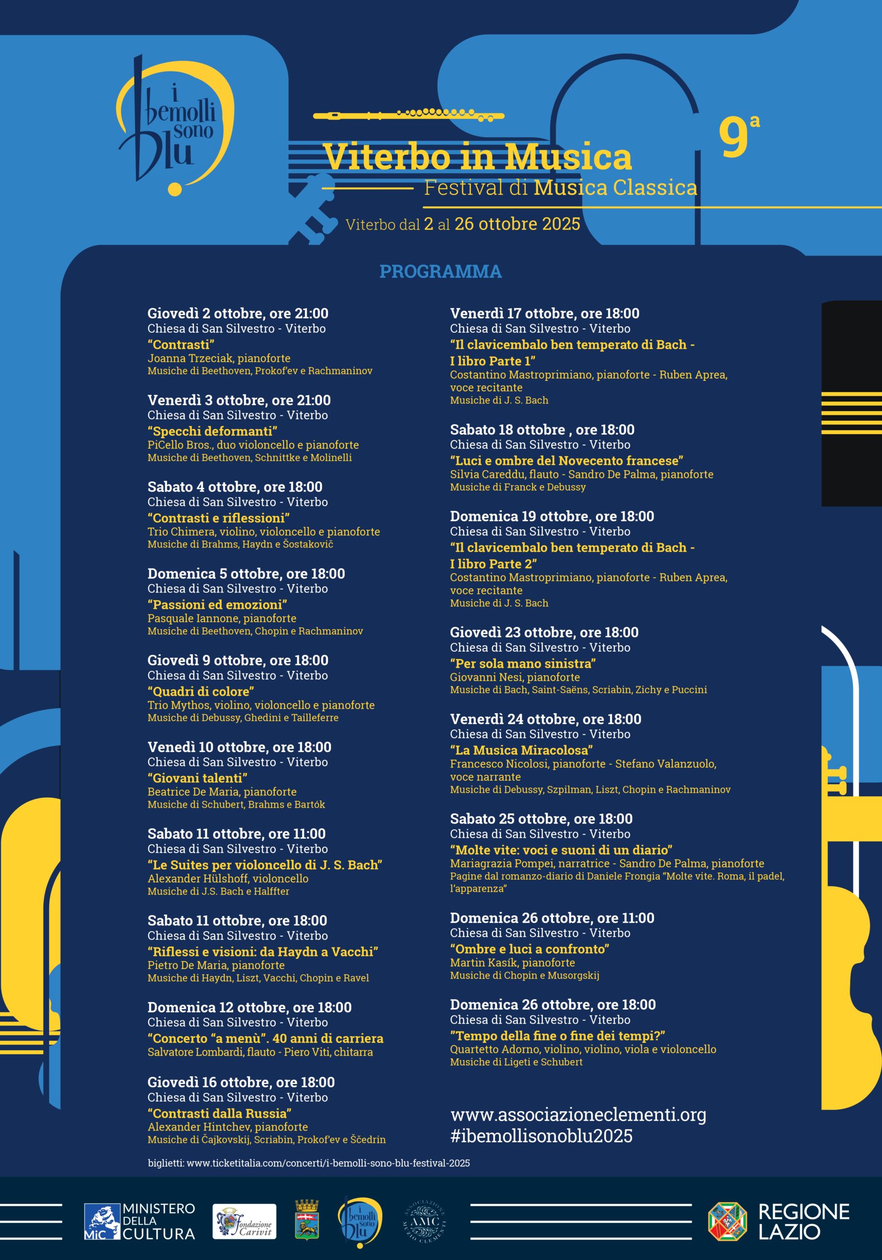 ℹ️Info: 351 7374543 – Il programma completo è disponibile su www.associazioneclementi@associazioneclementi.org – www.comune.viterbo.it – Pagina FB-Viterbo Informa